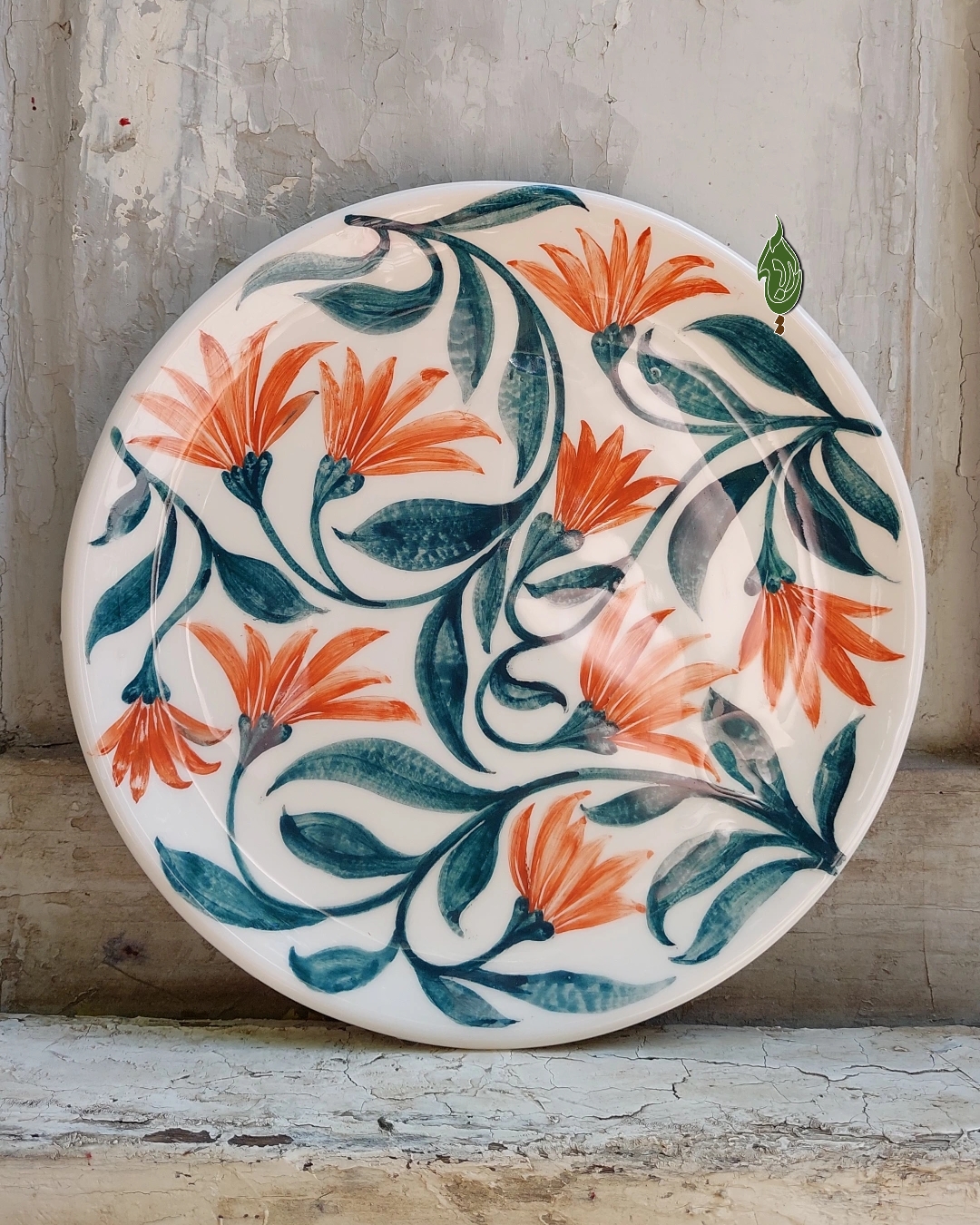 بشقاب دیوارکوب آردیج به قطر ۲۶ سانتیمتر با گلهای نارنجی